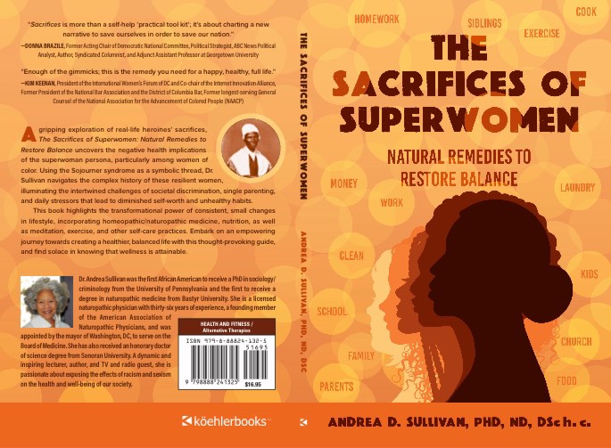 As little girls, we are told that we stand on “steely shoulders.” The shoulders of strong, faithful, and courageous women who looked out for everyone in order to survive. In Dr Andrea D Sullivan’s new book, “The Sacrifices of Superwomen: Natural Remedies to Restore Balance,” she reminds us that we have grown “sick and tired of being sick and tired.” Too many Black women are on the front lines saving everyone but themselves. They’re super-givers who neglect themselves. Oh, they see their doctors, but they don’t really get better. Dr Sullivan believes that to save our community and our country, we have to save ourselves. Drawing on 34 years of practice as a naturopathic physician, she knows the stresses and problems that Black women face and the health issues we must confront. Enough is more than a self-help “practical tool kit,” it’s about charting a new narrative to save ourselves in order to save our nation.